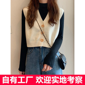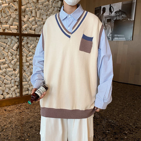 女士春秋马甲外搭口袋宽松V领毛衣背心韩版ins潮流...