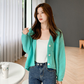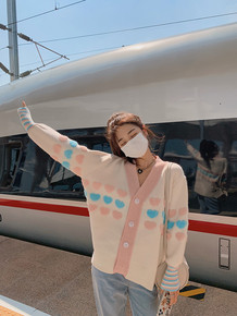 甜美爱心开衫毛衣女外套2021秋季新款韩版宽松日系...