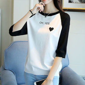 2022春秋装拼色圆领打底衫蝙蝠袖宽松韩版学生套头...