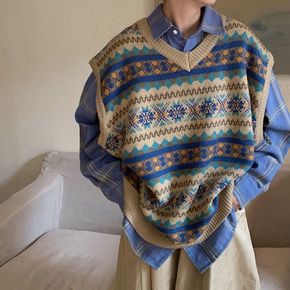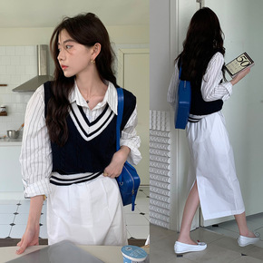 2022新款复古减龄撞色V领无袖背心女秋季学院风针...