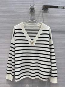 篙端品质2022秋冬新款百搭显瘦条纹学院风v领舒适...