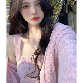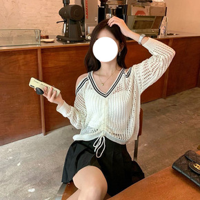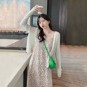 开衫薄款女外穿配吊带外套宽松显瘦针织衫高档冰丝V领...