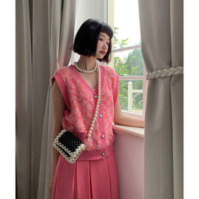 SROOM十三行马甲针织背心女小香风开衫外穿短款无...