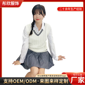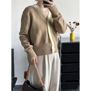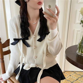 2022早秋新品 时尚气质V领减龄少女学院风针织上...
