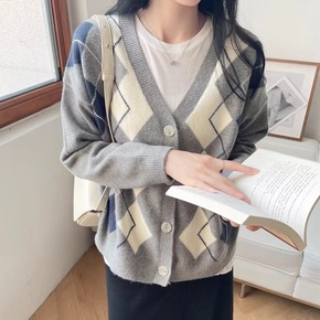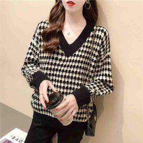 时尚菱格慵懒学院风毛衣女装秋季2022年韩版新款宽...