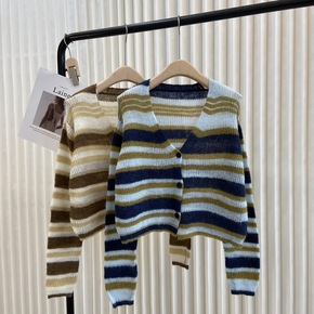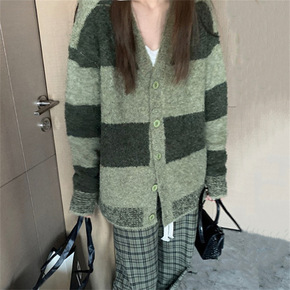 慵懒风软糯条纹毛衣开衫女秋季2022新款宽松学院风...