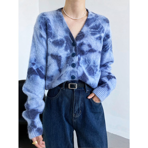 白百何同款复古V领长袖印花开衫毛衣宽松外穿慵懒风针...