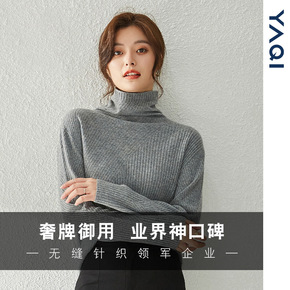 无缝纯羊绒衫!亚琦-秋冬高领针织毛衣不规则下摆宽松...