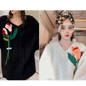 白鹿明星同款2021冬季新款郁金香V领廓形针织衫毛...