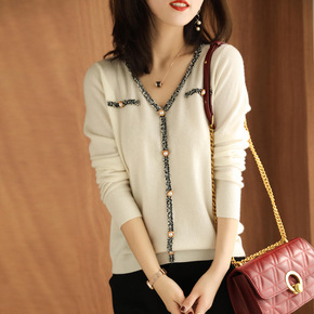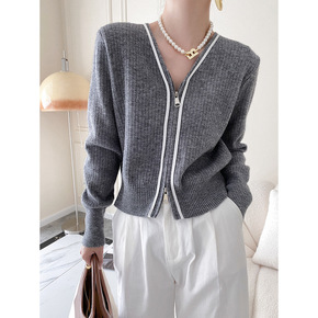 司南 薄款外搭拉链新款2021秋季针织开衫外套女V...