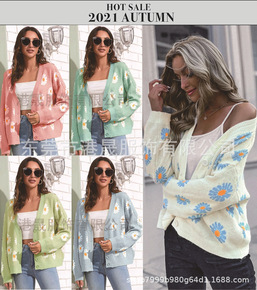 欧美大码秋冬针织衫女士中长款针织开衫女装跨境宽松复...