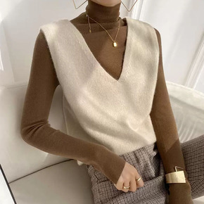 22新款工厂直销V领针织马甲女宽松外套背心可内搭叠...