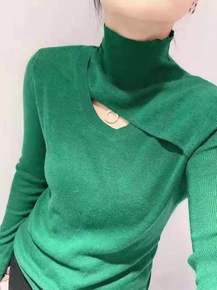 2022春季新品软糯羊毛毛衣高领长袖上衣镂空设计针...