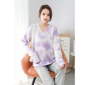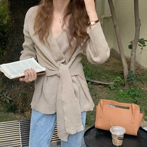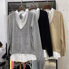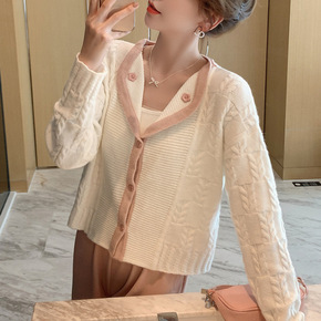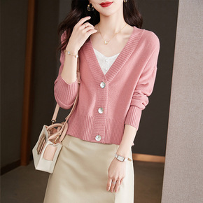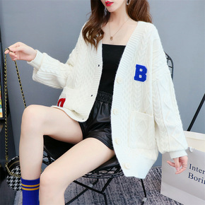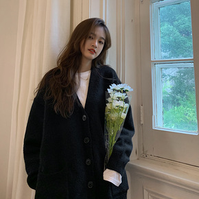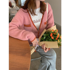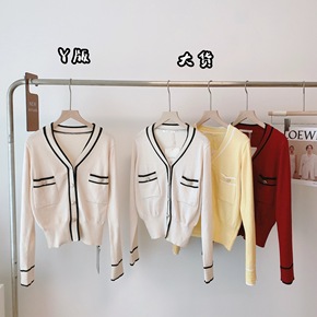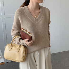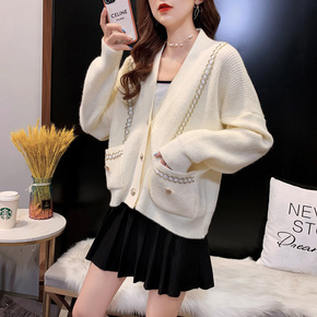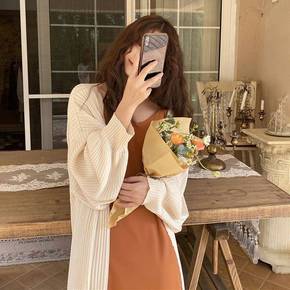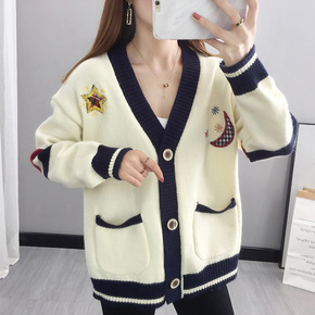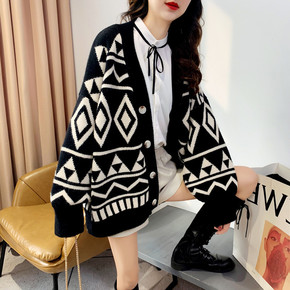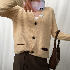 2021秋季新款韩版复古休闲外搭宽松针织开衫V领毛...