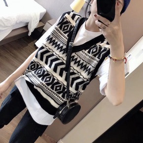 复古条纹针织背心马甲女2021春秋新款女装时尚百搭...