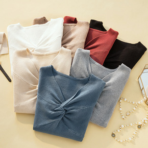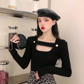 2021新款娃娃领长袖针织衫上衣女秋冬设计感宽松短...