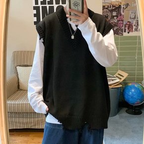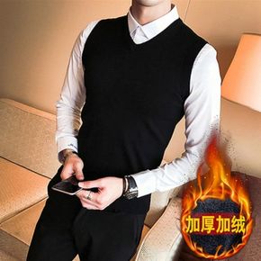 秋冬男士针织毛背心 男士无袖毛衣加绒加厚坎肩修身毛...