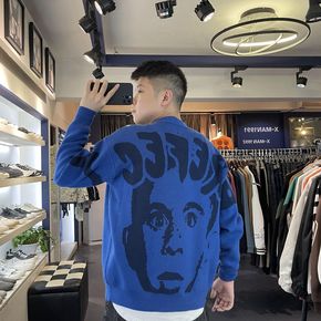 2021秋冬新款撞色印花撞色针织衫毛衣男韩版潮流长...
