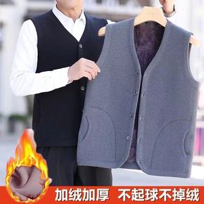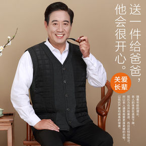 批发春秋中年男士羊毛背心针织大码马甲羊绒中老年坎肩...