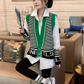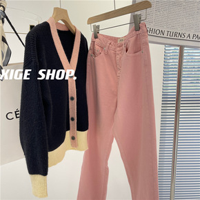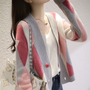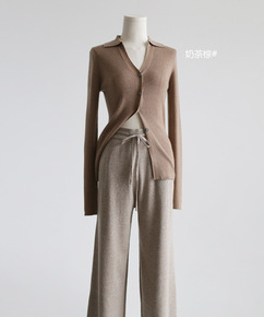 秋时髦洋气Polo领针织衫洋气V领长袖开衫修身显瘦...