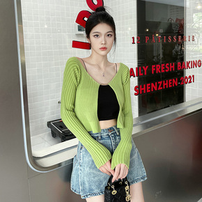 小性感2022年早春新款纯欲辣妹时尚露脐长袖薄开衫...