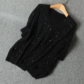 星空珠光亮片山羊绒衫套头秋冬女装外秋冬新款代发...