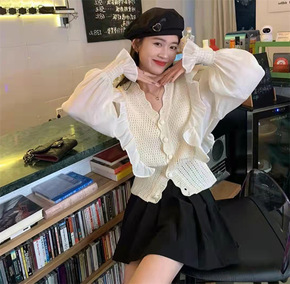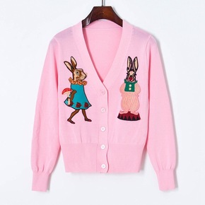 2022春夏新款卡通贴布兔子薄款针织衫开衫女式上衣...