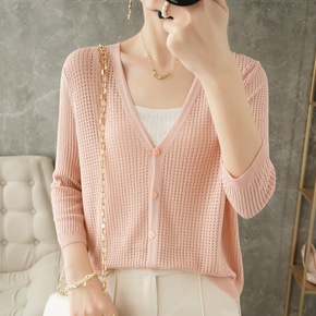 镂空针织小香风防晒开衫薄款女春秋宽松外搭空调罩衫短...