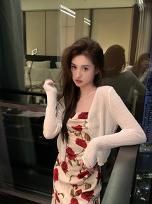 若隐若现 薄款弹力冰丝针织开衫女夏季新款韩版短款外...
