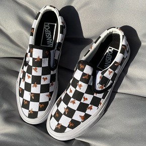 一件定制2020万斯外贸新款小熊黑底板鞋休闲鞋女帆...