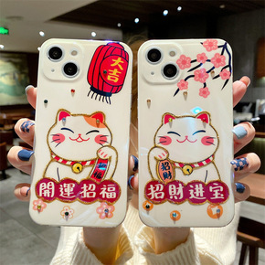 适用iphone12手机壳中国风花卉tpu彩绘手腕...