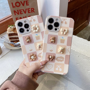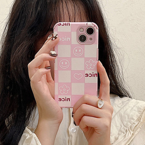 适用ins粉色棋盘格笑脸爱心vivoX27手机壳X...