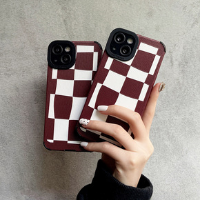 适用网红ins风酒红不规则格子适用vivoS7手机...