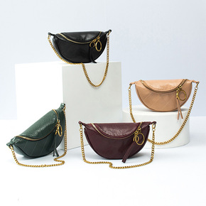女包新款2021胸包女斜跨百搭时尚单肩链条饺子包c...