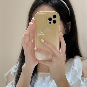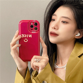 简约玫红笑脸适用iPhone13手机壳12硅胶软1...