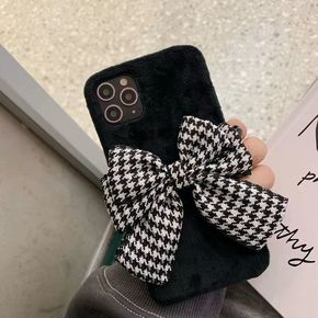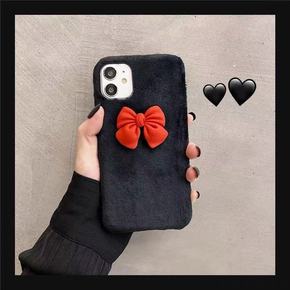 适用毛绒立体红色蝴蝶结小米110s98手机壳红米k...