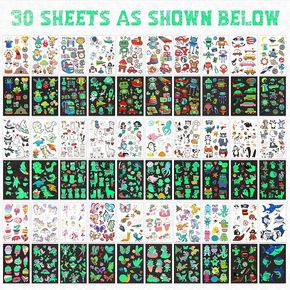 夜光纹身贴防水临时可爱恐龙独角兽美人鱼tattoo...