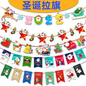 圣诞节装饰品纸质吊旗三角旗圣诞老人雪人拉旗商场酒店...